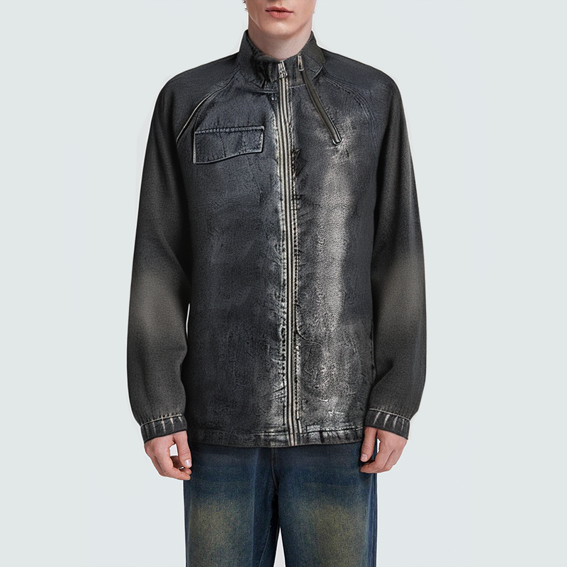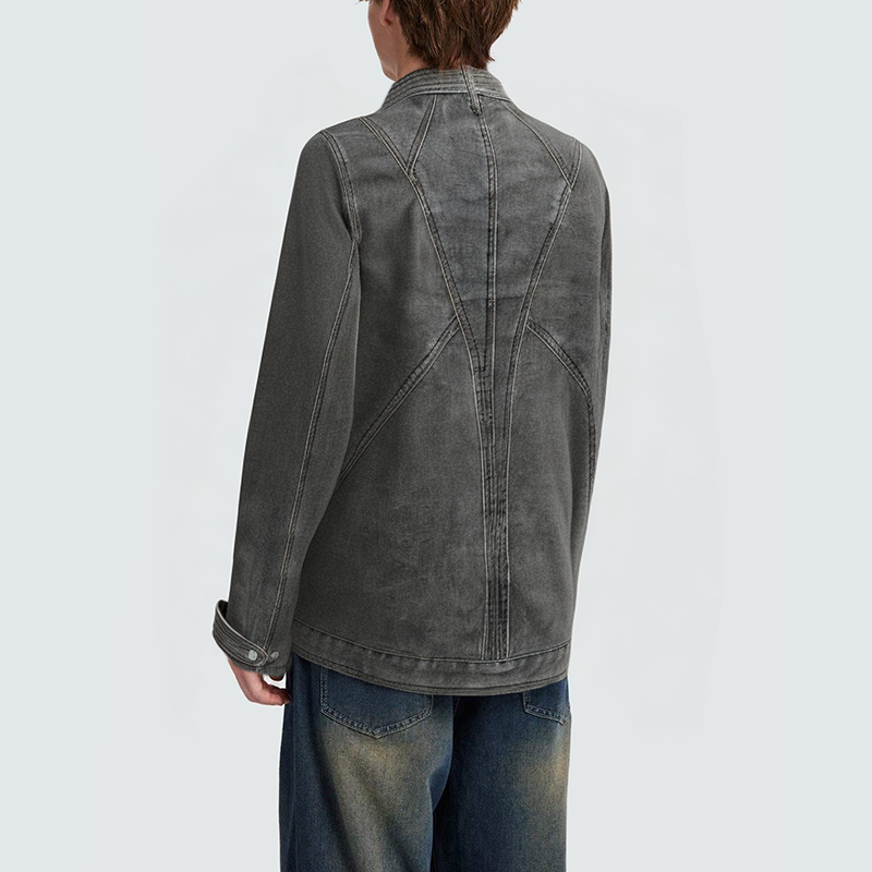 This men’s denim jacket features a vintage wash, creating a natural color shift and a distressed texture, creating a classic vintage look. The clean, crisp semi-stand collar, with detailed seams, highlights the craftsmanship and three-dimensional silhouette. The front zipper closure allows for easy on and off, ensuring a secure fit and a clean, streamlined silhouette. […]
