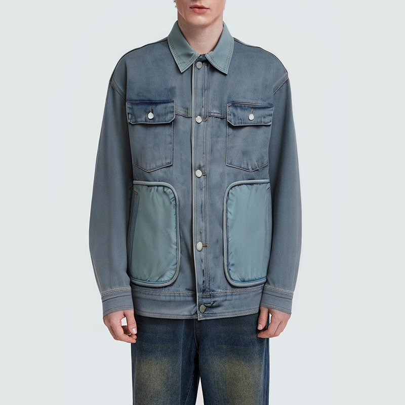 This men’s denim jacket features a stylish patchwork design, cleverly combining different fabrics and color blocking for a uniquely layered look and streetwear flair. The simple lapel design and button closure offer easy on and off while maintaining a crisp silhouette. Raw edge details add a vintage and effortless touch, highlighting the craftsmanship. Multiple pockets […]