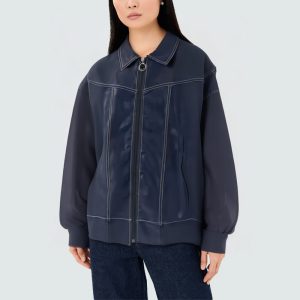 This women’s jacket features a classic lapel design and clean, streamlined lines for a sophisticated look. A front zipper closure provides easy on and off while also offering added warmth. Contrast stitching adds visual dimension and a stylish touch. Practical side pockets provide storage for small items and a comfortable rest for your hands. The loose fit allows for full range of motion and flatters all body types, offering a comfortable yet effortless style, making it an ideal everyday outerwear choice for spring and autumn.