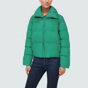 This women’s down jacket features a classic lapel design, combining style and practicality. The front zipper closure is smooth for easy on and off, while also effectively blocking out wind. Side pockets provide additional storage and add dimension. The elasticated back hem contours to the body, trapping warmth and keeping out drafts. The uniform filling creates a light, fluffy, and comfortable fit, making it perfect for everyday travel and winter commuting, showcasing a sophisticated and warm winter style.