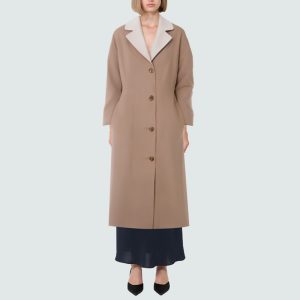 This women’s wool coat features contrasting lapels, adding a touch of depth and style. The single-breasted design is simple and elegant, making it easy to put on and take off while maintaining a clean, streamlined look. The side pockets are both practical and decorative, perfect for small essentials. The loose fit is comfortable and non-restrictive, making it perfect for daily commuting or casual travel. The carefully selected soft fabric provides exceptional warmth, providing warmth in cold weather while maintaining an elegant look.