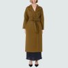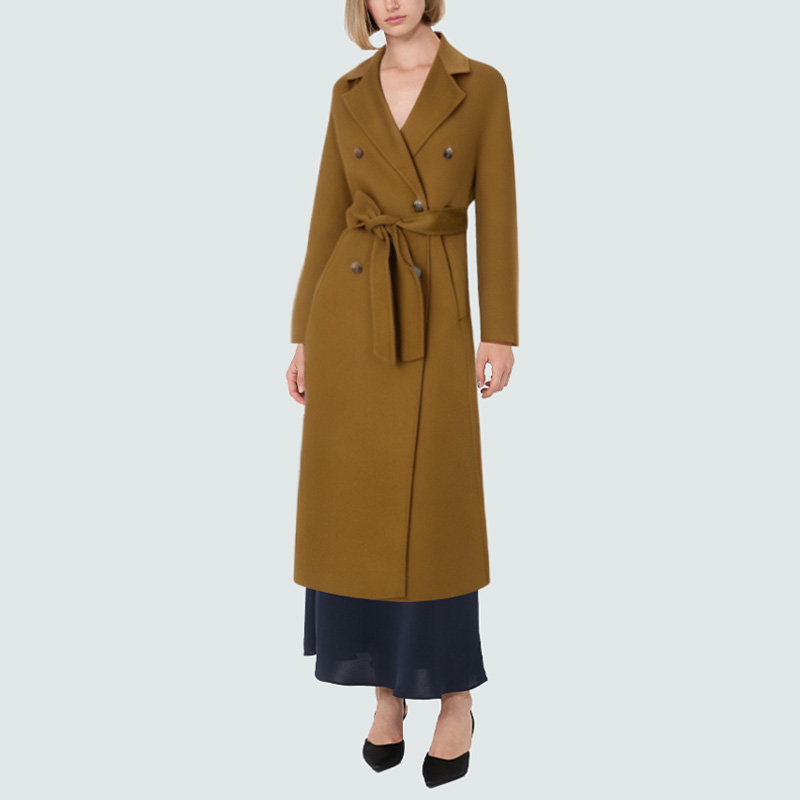 This women’s wool coat features a classic notched lapel design, exuding elegance and sophistication. The double-breasted front closure creates a layered look, making it easy to put on and take off while adding a stylish touch. The practical side pockets enhance the overall design and provide easy storage for small essentials. The adjustable waist tie perfectly defines the waistline and creates a flattering silhouette. Made from high-quality fabric, it’s soft and delicate, offering excellent warmth, ensuring comfort and a premium feel in cold weather.