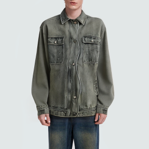 This men’s denim jacket features a distressed wash for a naturally faded, vintage-inspired look, creating a classic, street-inspired look. The simple lapel design and button closure provide easy on/off while maintaining a crisp silhouette. The side pockets are both practical and decorative, perfect for storing essentials and adding dimension to the overall look. The loose, comfortable fit is perfect for casual everyday wear or layering, effortlessly showcasing a relaxed, effortless style.