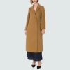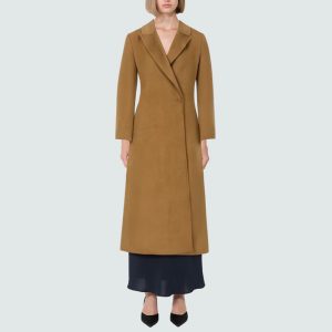 This women’s wool coat, designed with minimalist elegance in mind, embodies the relaxed and confident spirit of urban femininity. The classic notched lapel creates a sharp silhouette, flattering the neck and shoulders for a refined look. The button closure on the front allows for easy on and off while maintaining a neat look. The side pockets are both practical and stylish, providing convenient storage for everyday essentials. The slim fit contours to the body, creating a streamlined silhouette and showcasing a sophisticated yet feminine aesthetic. The fabric is soft and refined, offering exceptional warmth, making it an effortless and elegant winter style for both commuting and casual occasions.