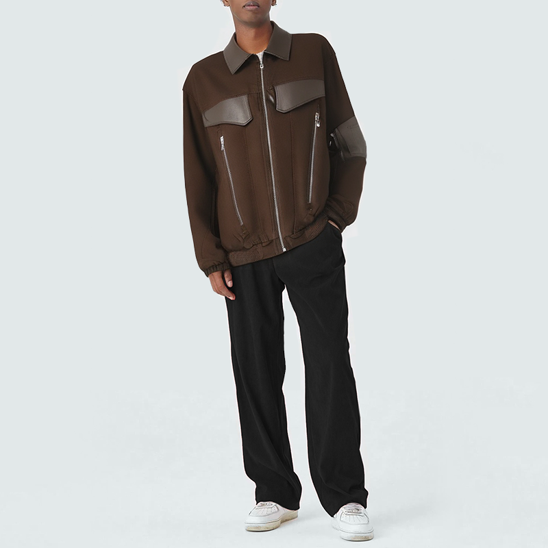 This men’s casual jacket features a leather lapel for a rugged yet stylish look, adding a unique touch. The smooth front zipper closure allows for easy on and off, yet provides a secure fit. Practical side pockets provide storage for essentials or easy access for your hands. Elastic cuffs fit snugly around the wrists for added comfort and wind protection, while the elasticated hem hugs the body for enhanced warmth and a streamlined look. The overall fit is well-designed for comfort and freedom of movement, perfect for everyday commutes, casual outings, and weekend getaways, creating a smart and stylish casual look.