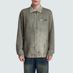 This men’s denim jacket features a vintage acid wash finish, creating a naturally faded and distressed look, creating a unique, street-style, casual look. The simple, rugged lapel design and zipper closure allow for easy on and off, enhancing the overall layered look. Frayed and ripped details add a touch of character and vintage charm, further enhancing the overall look’s stylish attitude. Side pockets are both practical and decorative, conveniently storing small essentials. The loose fit is comfortable and perfect for everyday wear or layering, effortlessly showcasing a relaxed, effortless style.
