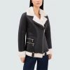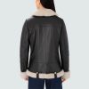 This women’s jacket features a plush lapel and cuffs for warmth and comfort, combining style with functionality. The diagonal zipper closure adds dimension and ease of on and off. The front zippered pocket is practical and adds a refined detail. The overall slim fit accentuates elegant lines, providing both comfort and warmth, making it ideal for everyday travel or casual wear during the fall and winter seasons. The combination of genuine leather and wool lining creates a jacket that’s both warm and luxurious.