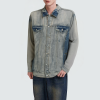 This men’s denim jacket features a vintage wash for a naturally faded look and a classic, worn feel, showcasing effortless streetwear style. The simple lapel design and button closure allow for easy on and off, while maintaining a crisp silhouette. Intricate seam details enhance the overall craftsmanship, while the side pockets are both practical and decorative, providing storage and layering. The comfortable fit is perfect for casual everyday wear or layering, effortlessly showcasing a relaxed, effortless style.