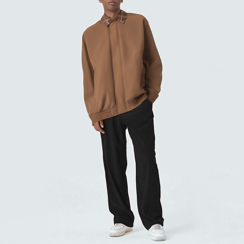 This men’s casual jacket, with its plaid lapel design, strikes a balance between classic and modern, showcasing refined details and a relaxed aesthetic. The smooth zipper closure on the front allows for easy on and off, perfectly balancing practicality and aesthetics. The two side pockets are practical and convenient for storing everyday essentials. The elasticated hem fits the body for enhanced comfort and adds a layered look. Pair it with jeans or casual trousers for a sleek, urban look.