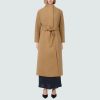 This women’s wool coat features a simple, elegant stand-up collar, showcasing refined style. It effectively protects against cold winds while projecting a sophisticated look. The button-fastening front creates a sleek, streamlined look. The waist tie allows for adjustable tightness, flattering the waistline and adding dimension. Side pockets are both practical and stylish, offering convenient storage. The overall fitted silhouette creates an elegant silhouette that easily transitions from work to leisure. The fabric is soft, smooth, and delicately tactile, offering exceptional warmth, ensuring a stylish and cozy winter look.
