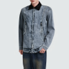 This men’s denim jacket features a washed and distressed finish, creating a vintage feel with natural color variations, adding a stylish, streetwear vibe. The contrasting lapel adds a touch of depth and dimension to the look, enhancing its visual impact. The front zipper closure provides easy on and off, ensuring a secure fit and a clean silhouette. The side pockets are both practical and decorative, perfect for storing essentials or keeping your hands warm. The relaxed fit ensures comfort and allows for easy layering, perfect for everyday casual wear, street style, or weekend getaways, creating a effortlessly casual look.