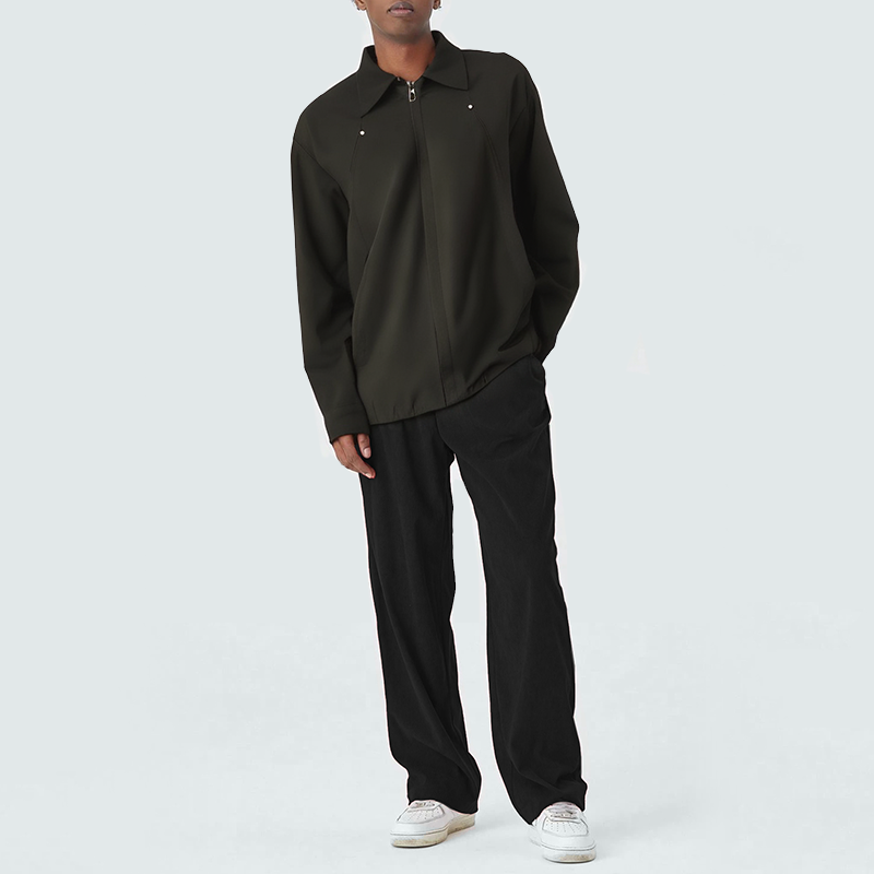 This men’s casual jacket features a simple, elegant lapel design, showcasing a relaxed yet sharp urban style. A smooth front zipper closure allows for easy on and off, maintaining a clean, streamlined silhouette. Practical side pockets are convenient for storing essentials or keeping your hands warm. The elasticated hem provides a snug fit and enhanced comfort while effectively blocking wind. The loose fit offers ample room for movement, creating a relaxed yet effortless look for everyday commutes, casual outings, or weekend getaways.