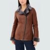 This women’s jacket features a plush lapel design, its soft and delicate texture adding a touch of warmth. The front zipper closure allows for easy on and off, maintaining a clean and sleek look. The side pockets are practical and stylish, perfect for storing small essentials. The plush cuffs match the collar, adding visual depth while effectively trapping warmth and providing excellent warmth. The overall shape is crisp and stylish, and the leather-textured exterior is combined with a soft interior, creating a stylish and comfortable look, making it an ideal choice for cold weather outings.