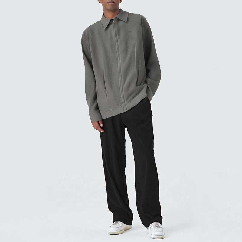 This men's casual jacket features a simple, solid color design, showcasing a smart, versatile, and casual style suitable for a variety of everyday occasions. The lapel adds a classic touch and enhances the overall look. The smooth zipper closure on the front allows for easy on and off, maintaining a clean and sharp silhouette. Practical side pockets are convenient for storing essentials or keeping your hands warm. The loose fit provides ample room for movement, creating a comfortable and natural feel that balances casualness and freedom. Whether for daily commuting, weekend outings, or casual streetwear, it's easy to create a smart and stylish casual look.