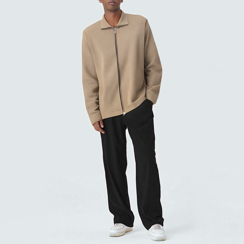 This men's casual jacket features a solid textured design for a subtle yet refined feel, showcasing a simple yet modern style. The lapel adds a classic touch and adds dimension to the overall look. The smooth front zipper closure provides easy on/off and a secure fit, making it convenient for everyday wear. The loose fit allows for comfortable movement, offering both freedom of movement and a relaxed feel, making it suitable for a variety of everyday occasions. Whether commuting, going on a casual trip, or going out on the weekend, it's easy to create a smart, urban casual look.