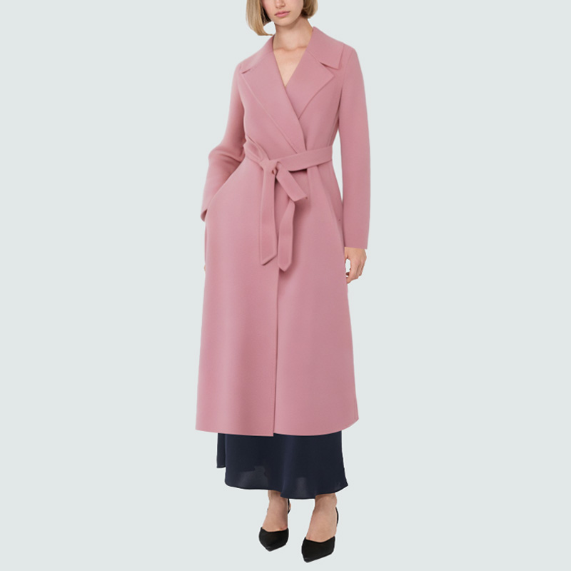 This solid-color women's wool coat exudes understated elegance with its simple yet elegant design. The classic lapel design not only enhances the overall look but also effectively protects the neck from the cold. The side pockets are both practical and stylish, conveniently carrying small essentials. The adjustable waist strap easily defines the waistline and creates a flattering silhouette. The coat is comfortable and warm, and its soft, fine texture makes it lightweight and comfortable even when worn next to the skin, making it a stylish essential for any winter wardrobe.