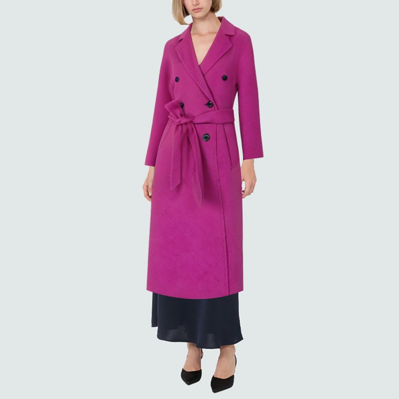 This women's wool coat features a classic notched lapel design and a double-breasted closure, embodying a refined and elegant vintage style. The adjustable waist tie accentuates the waistline and creates a flattering silhouette. The side pockets are practical for carrying everyday items and keeping your hands warm, while also adding a layered feel. This coat is thickened and warm, made from high-quality materials for softness and comfort, offering excellent warmth, making it perfect for fall and winter. The overall design combines fashion with practicality, easily complementing both work and casual looks for a refined look.