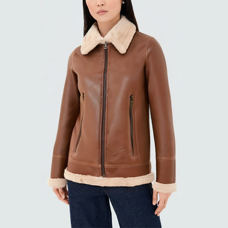 High-quality and comfortable zip-up women's leather jacket