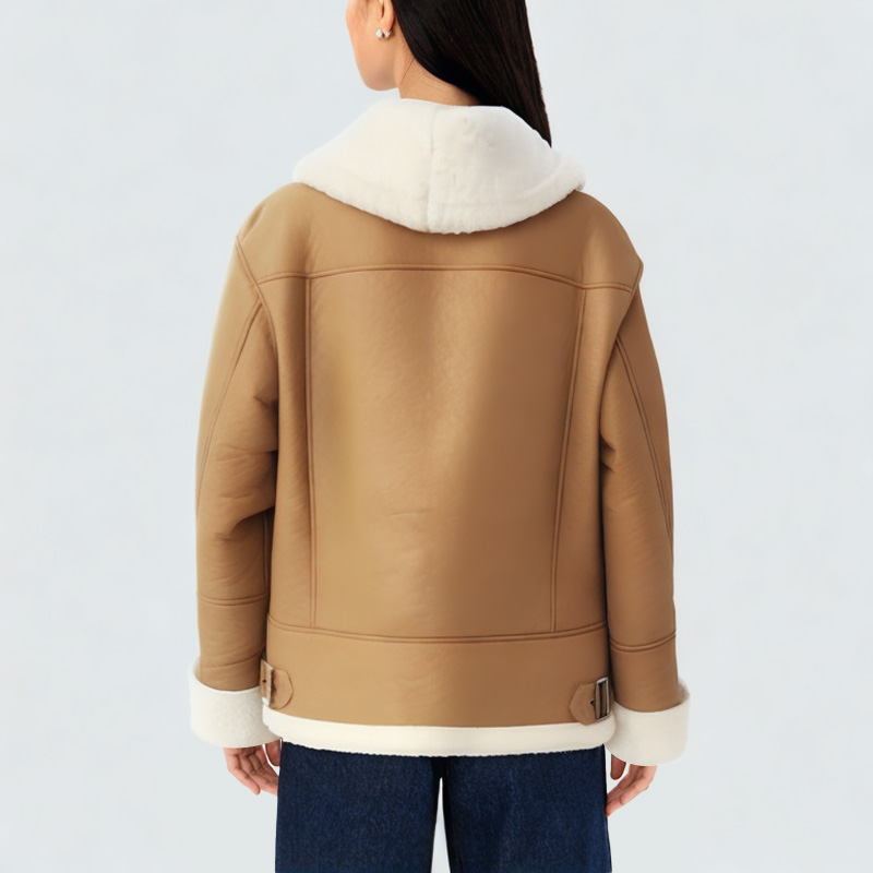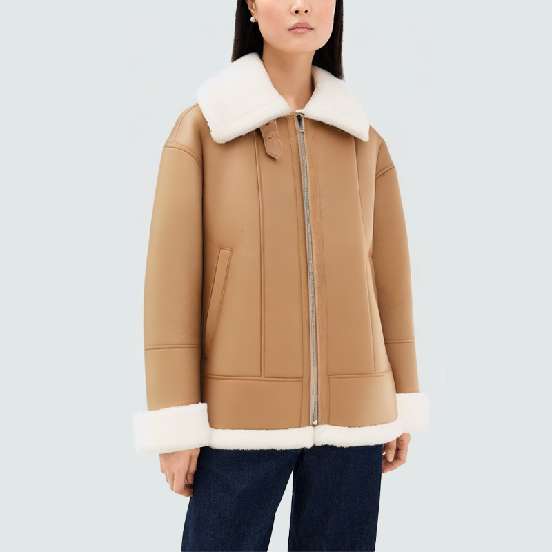 This women's jacket combines warmth and style. The soft, next-to-skin plush lapel provides extra warmth around the neck and adds a unique touch. The front zipper closure allows for easy on and off, while maintaining a clean, streamlined look. The side pockets are practical for storing small items and add visual dimension. The plush lining inside provides comfortable insulation, ensuring warmth for commuting or leisure activities. The comfortable fit of the jacket balances warmth with everyday wearability, making it an ideal outerwear choice for fall and winter.