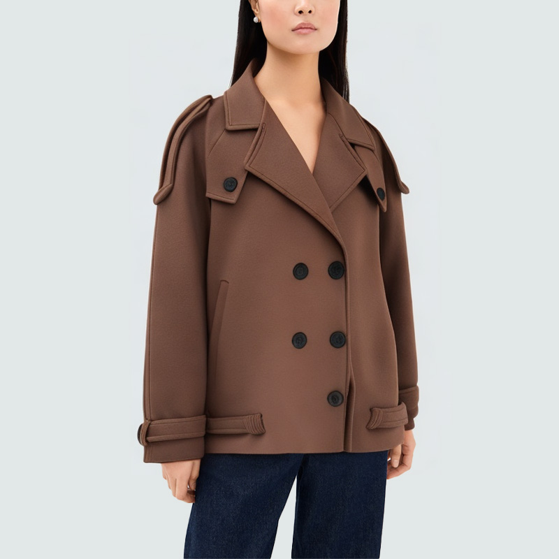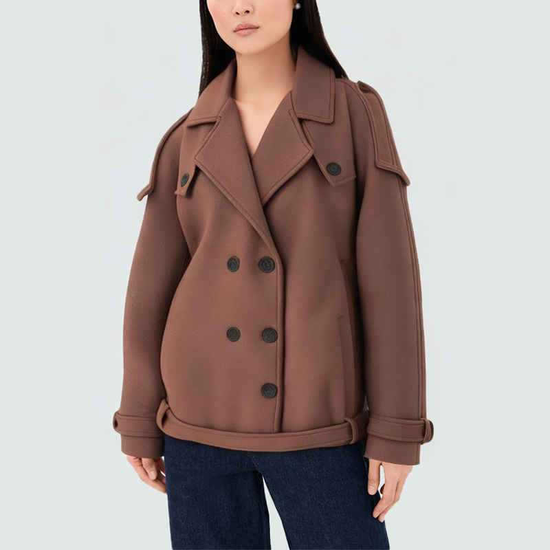 This women's jacket features a classic lapel and double-breasted design, showcasing an elegant, vintage-inspired style. The adjustable waistband creates a defined waistline and allows for a custom fit, combining practicality with style. Side pockets provide convenient storage for small essentials while adding a casual touch. The loose fit provides a comfortable fit that flatters all body types, allowing for a relaxed, effortless everyday look. The overall design is simple yet sophisticated, perfect for daily commuting, casual outings, or spring and autumn wear.