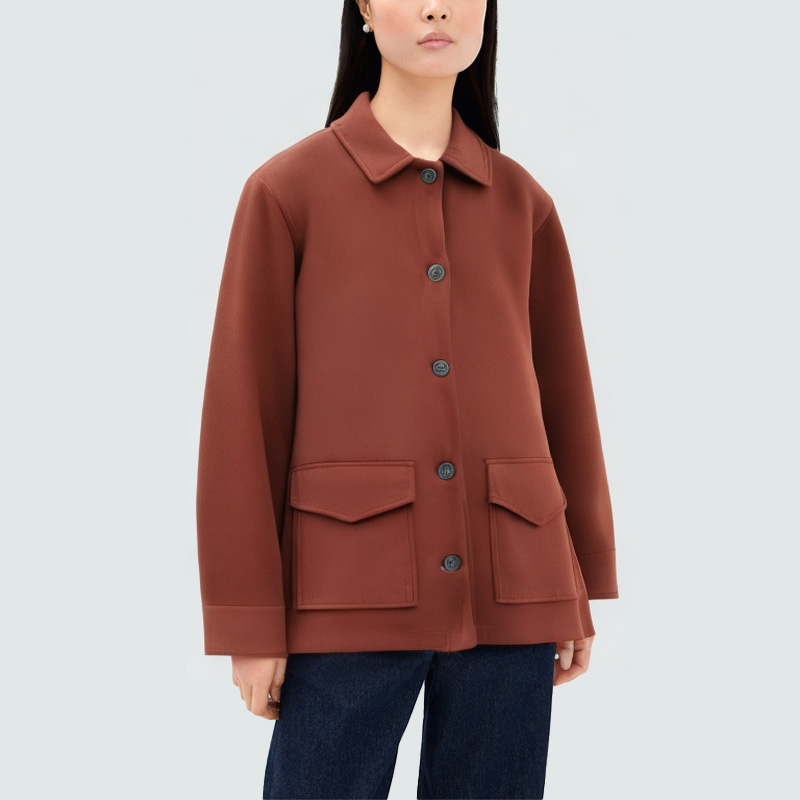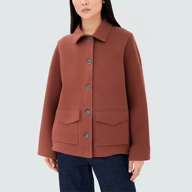 This women's jacket features a solid color scheme, creating a simple yet elegant look that easily complements any outfit. The classic lapel design enhances the overall look and accentuates a sophisticated, sleek style. The button-down front closure provides easy on and off, adding a touch of detail. The flap pockets on each side are practical, providing additional storage space and adding a touch of design. The fabric is elegantly textured, soft to the touch, and boasts a rich, three-dimensional feel, giving the jacket a sophisticated and refined look. Perfect for everyday wear, commuting, or casual occasions, it creates a sophisticated and elegant look.