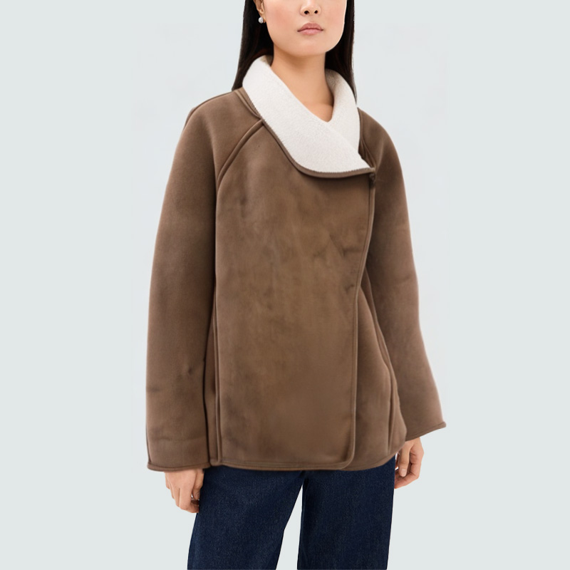 This women's jacket combines comfort and style. Its plush lapel design provides a soft, warm feel against the skin and provides winter warmth. The front zipper closure makes it easy to put on and take off, while adding a sharp, clean look. Practical side pockets provide convenient storage for small items. The loose fit provides a comfortable and versatile fit that easily pairs with casual or urban styles for a relaxed and stylish look.
