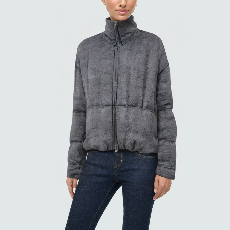This women's down jacket features a simple, practical design, combining style and warmth. The stand-up collar effectively blocks wind and provides a snug, comfortable fit. The front zipper closure is easy to put on and take off, providing enhanced windproofing and warmth. Practical side pockets are convenient for storing small essentials, balancing style with functionality. The adjustable drawcord at the hem allows for personalized fit and creates a more sculpted silhouette. The overall design is sleek and stylish, lightweight and warm, making it suitable for everyday commuting and outdoor activities, adding a touch of sophistication to any winter outfit.