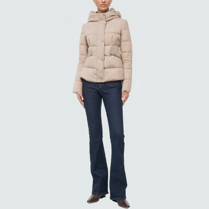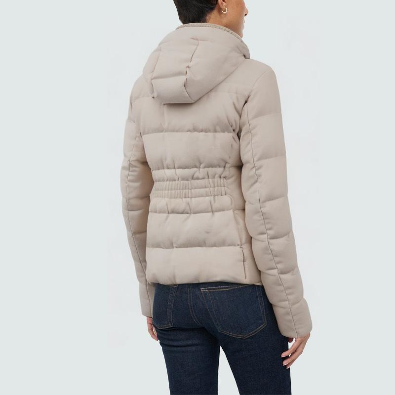 This women's down jacket is designed for practicality and stylish comfort, combining stylish design with winter warmth. The hooded design effectively blocks wind and cold, enhancing overall warmth while adding a casual touch. The front features a double zipper and snap closure for secure windproofing and easy adjustment. Concealed side zippered pockets on each side offer both style and practicality, securely storing essentials. An elasticated waistband at the back provides comfort while flattering the figure and enhancing curves. The overall silhouette is clean and sleek, and the down filling provides lightweight warmth, making it a comfortable and comfortable jacket for cold weather, whether you're commuting or just relaxing.
