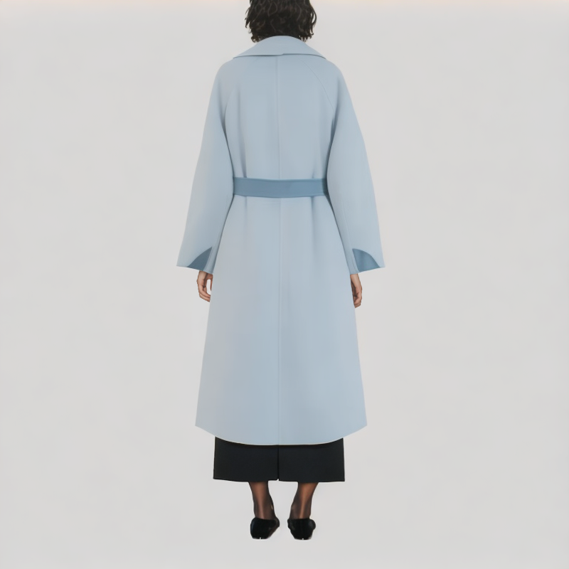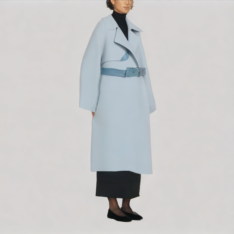 This double-layer wool coat embodies a minimalist and elegant design. The delicate slim belt defines a soft silhouette, highlighting feminine charm while ensuring a natural, comfortable fit. Crafted from sustainable cotton/polyester blended fabric, it is both eco-friendly and durable, providing lasting quality for everyday wear.