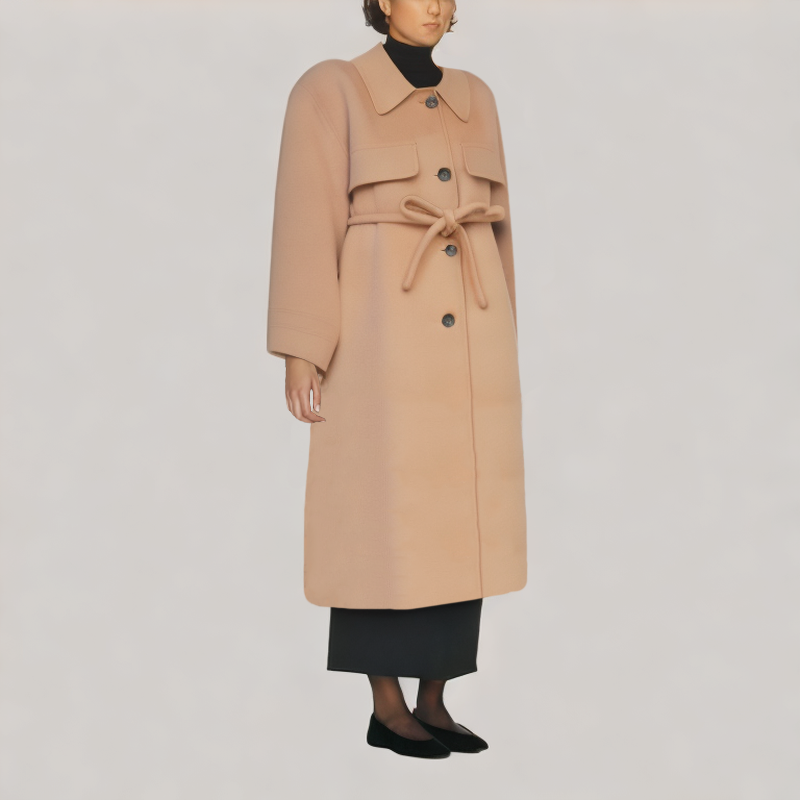 Made from sustainable lambswool, this coat is soft and gentle on the skin, offering both warmth and lightweight comfort. The finely woven texture exudes natural elegance and a subtle luxurious feel.