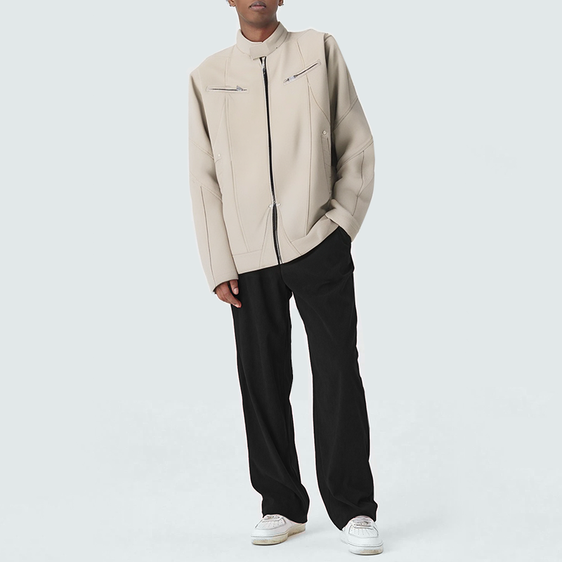This men's casual jacket features a stand-up collar, showcasing a simple, smart urban style. It combines warmth with a sleek silhouette. The front zipper closes smoothly for easy on and off, ensuring a secure fit. Practical interior pockets and side chest pockets provide convenient storage for essentials like a phone and keys while maintaining a clean look. This well-tailored jacket is perfect for daily commutes, casual outings, or weekend getaways, effortlessly creating a sophisticated and casual look.