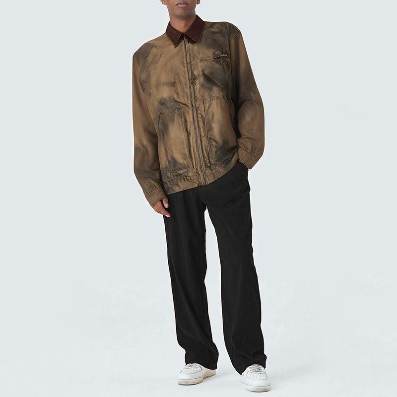 This men's casual jacket features a vintage tie-dye technique, creating a unique look with rich, layered colors that showcase a refined and stylish aesthetic. The simple, elegant lapel adds a sharp, streamlined silhouette. The smooth zipper closure at the front provides easy on and off, yet secure. Practical side pockets provide convenient storage for essentials while maintaining a neat and tidy look. Whether for everyday casual wear, weekend getaways, or street style, this jacket easily showcases a casual style that combines individuality and style.