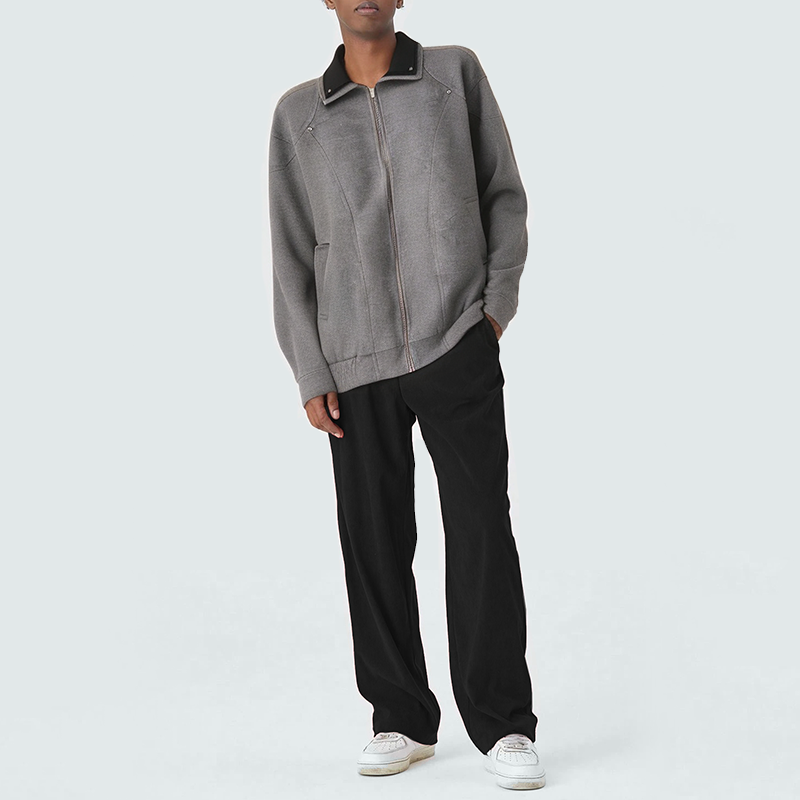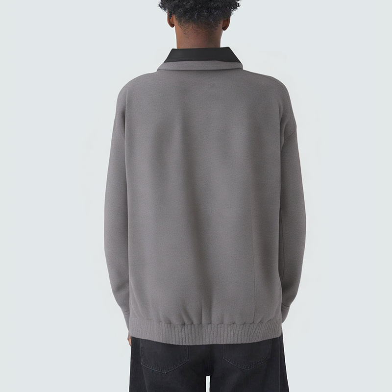 This men's casual jacket features a double-layered contrast lapel design, creating a unique layered and stylish look that adds a touch of class. The smooth front zipper closure allows for easy on and off, yet secure, maintaining a clean, streamlined silhouette. Practical side pockets easily store essentials or keep your hands warm. The elasticated hem provides a snug fit and enhanced wind protection. The jacket's overall silhouette balances comfort and freedom of movement, making it ideal for everyday commutes, casual outings, and weekend activities, creating a smart and stylish casual look.