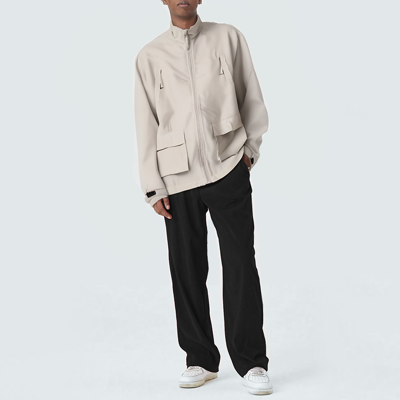 This men's casual jacket features a stand-up collar for a clean, streamlined look that enhances the neckline and adds a casual, urban vibe. The smooth front zipper closure allows for easy on and off, yet secure and maintains a clean silhouette. Side flap pockets offer both practicality and style, storing essentials and adding a touch of detail. Velcro cuffs adjust to the wrist for comfort and wind protection. The loose fit provides ample room for movement, offering a relaxed yet comfortable feel. Perfect for everyday commutes, casual outings, and weekend getaways, it effortlessly creates a refined, casual look for men.