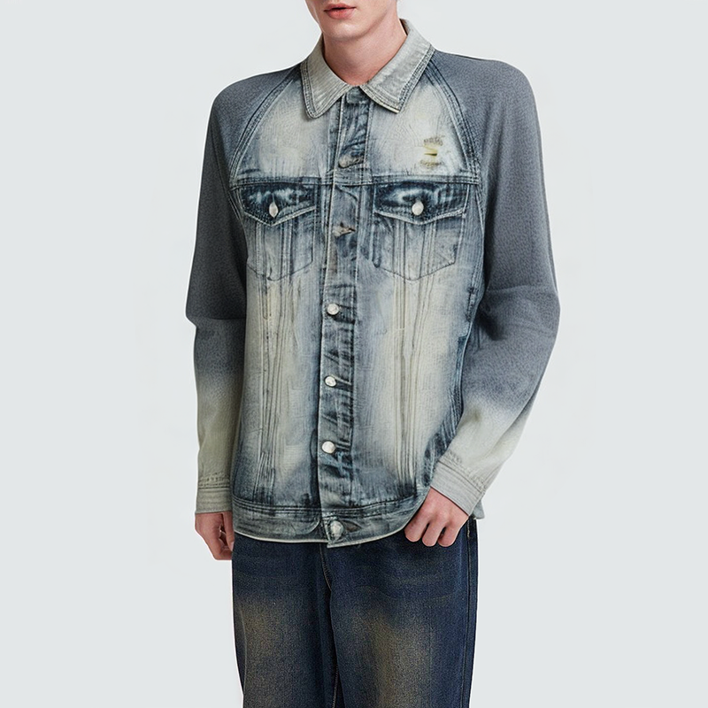 This men's denim jacket features a classic washed and faded finish, creating a natural vintage feel and unique layered texture. The sleek lapel design and button closure make it easy to put on and take off, adding a crisp, clean look. The side pockets are both practical and stylish, while the decorative chest pocket adds a touch of detail and adds dimension to the jacket's design. The overall fit is tailored yet relaxed, making it suitable for everyday wear or casual outfits, showcasing a casual and sophisticated style.