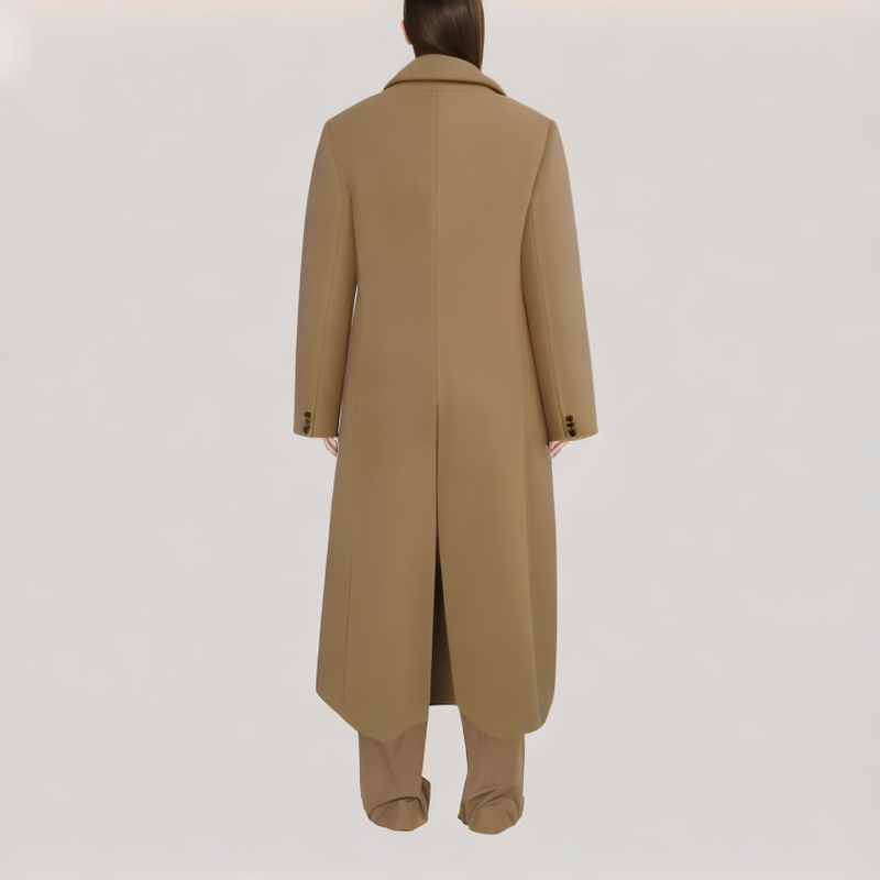 This loose tie-waist wool coat perfectly blends vintage elegance with modern sustainability. Made from a blend of sustainable wool and viscose, the fabric is soft to the touch, durable, and environmentally friendly.