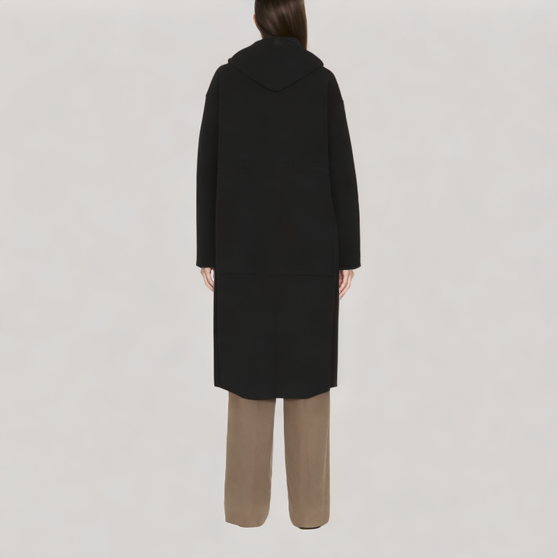 This long coat is crafted from luxurious Australian wool blended with rare Inner Mongolian cashmere, combining the delicate softness of cashmere with the natural elasticity of wool. It offers an exceptionally comfortable and warm wearing experience for the autumn and winter seasons.