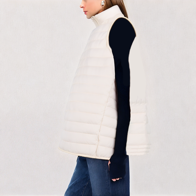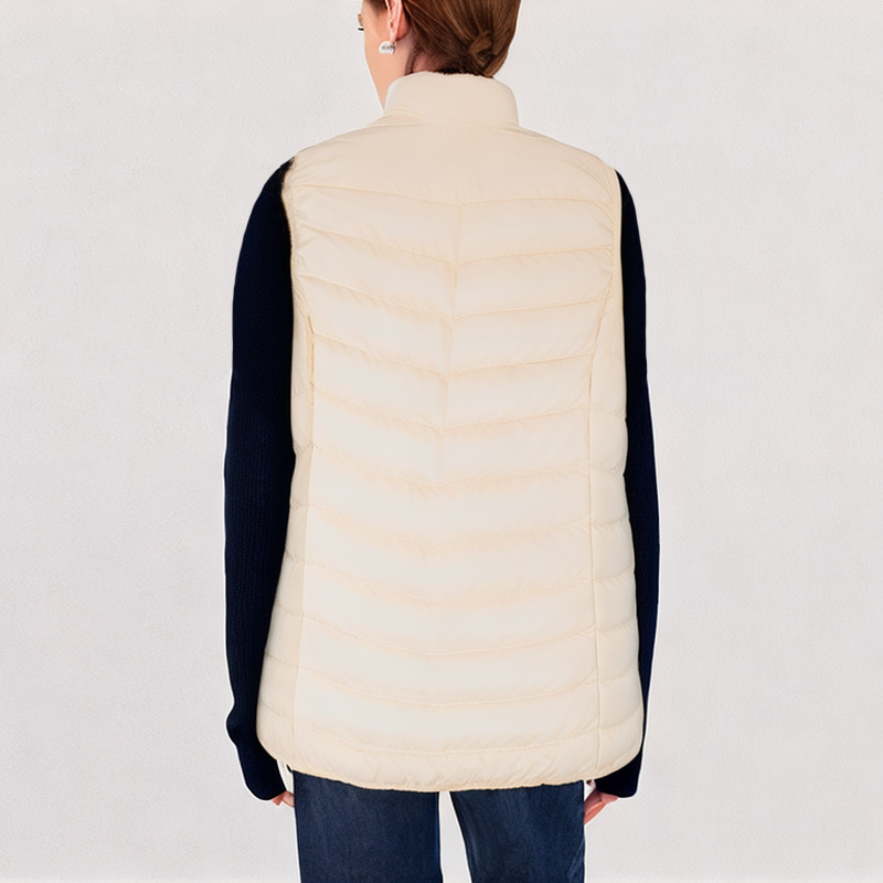White Duck Down Filling Features: Filled with premium white duck down, this vest is fluffy, lightweight, and highly resilient, providing efficient warmth to the core. The lightweight design ensures comfortable wear while maintaining the vest's structure and crisp shape, preventing it from sagging even after prolonged wear.